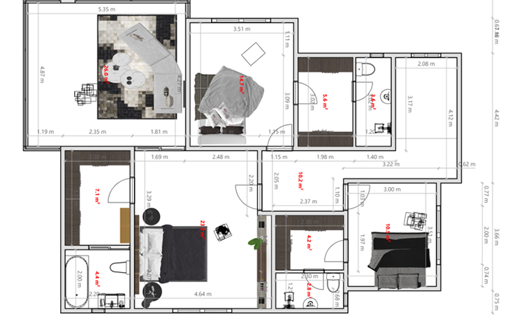 Avant le début des travaux, il est important de savoir exactement ce que vous allez obtenir. C’est pourquoi nous proposons des plans 2D et 3D pour vous aider à visualiser et comprendre votre projet sous tous les angles.
